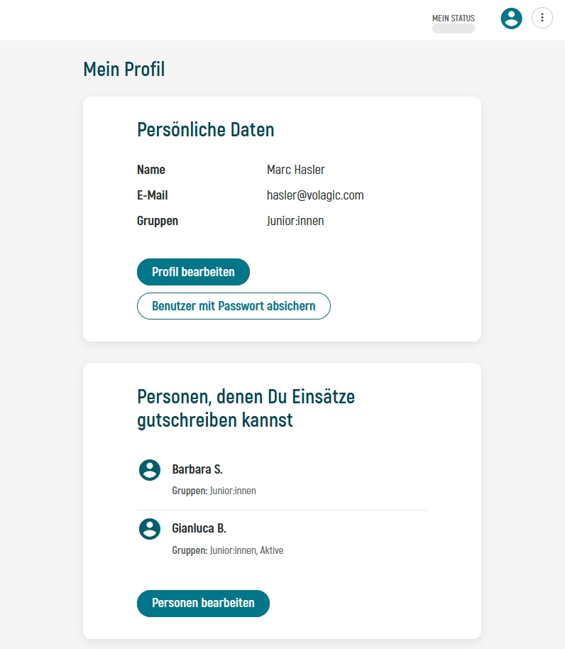 Die zweite Option lautet "Gutschrift". Hier müssen beide Helfenden, also die Einsatz leistende als auch die profitierende Person, registrierte Helfende sein. Zusätzlich müssen die Personen, welchen Einsätze gutgeschrieben werden können, vorgängig erfasst werden. Diese Option macht beispielsweise dann Sinn, wenn Eltern als auch ihre Kinder Mitglieder im Verein sind. Die Eltern können so Einsätze für ihre Kinder leisten, und die Einsätze werden den Konten der Kinder gutgeschrieben.