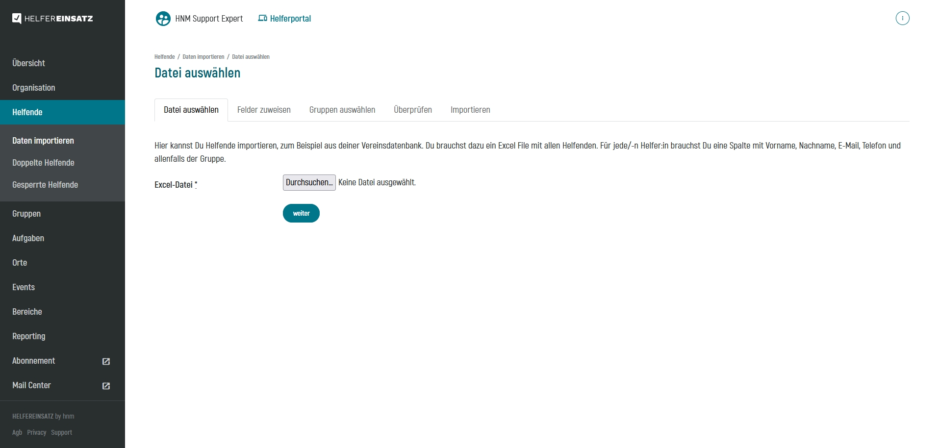 Startseite Helferimport