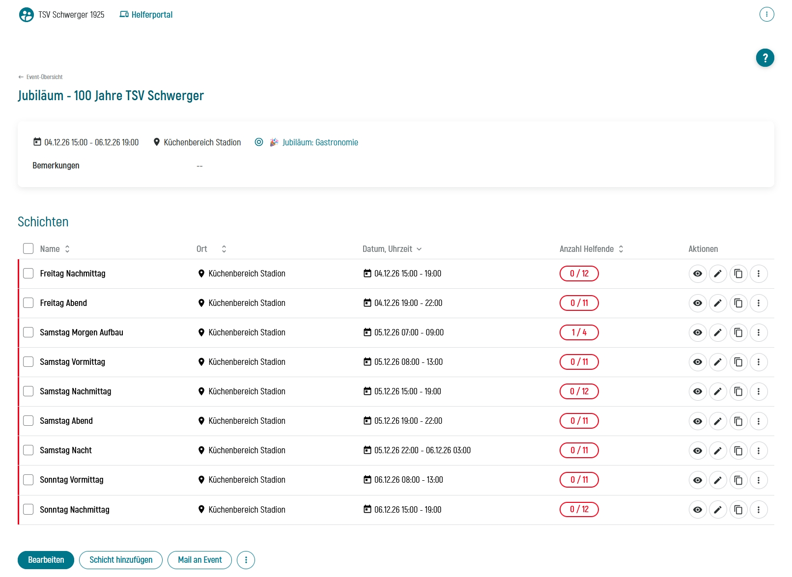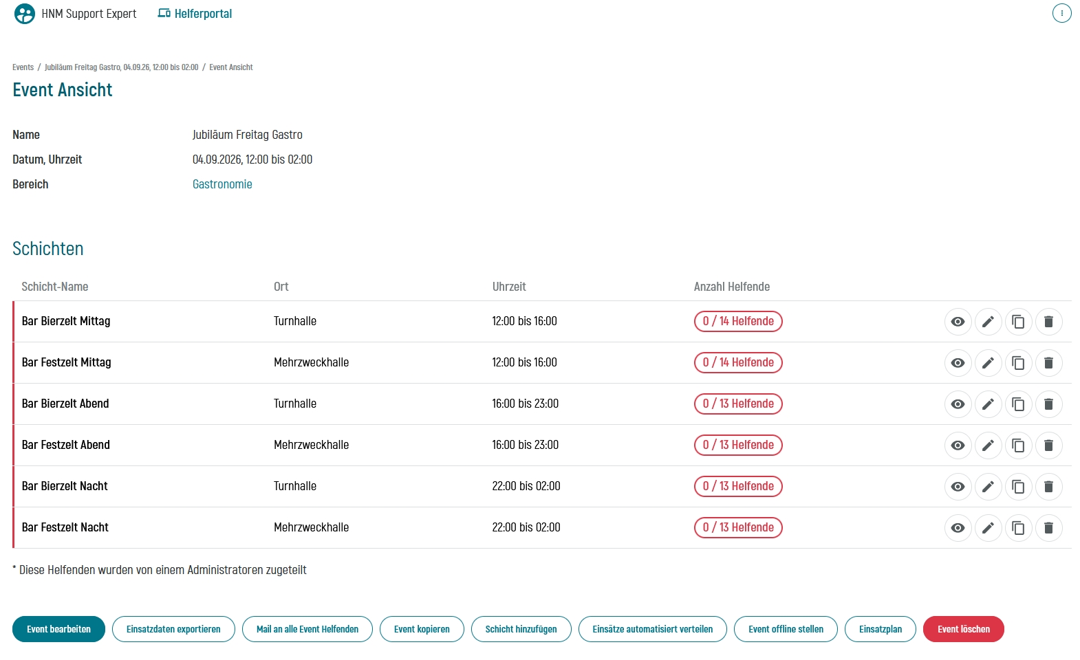 Beispiel eines Events mit Schichten, auch über mehrere Tage